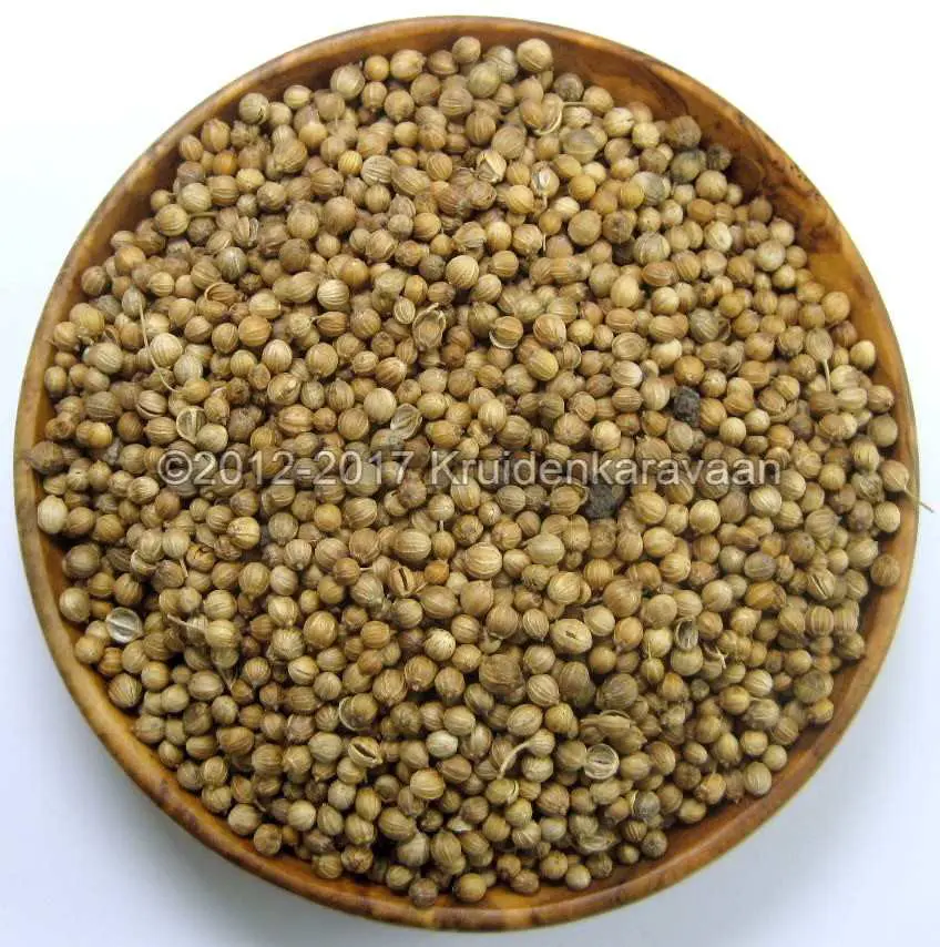 Heel Korianderzaad – Koriander (Coriandrum sativum) ook wel ketoembar genaamd, is een plant uit de schermbloemenfamilie. Het komt oorspronkelijk uit het Middellandse Zeegebied en het Midden Oosten maar groeit tegenwoordig in alle warme gematigde streken van de wereld.