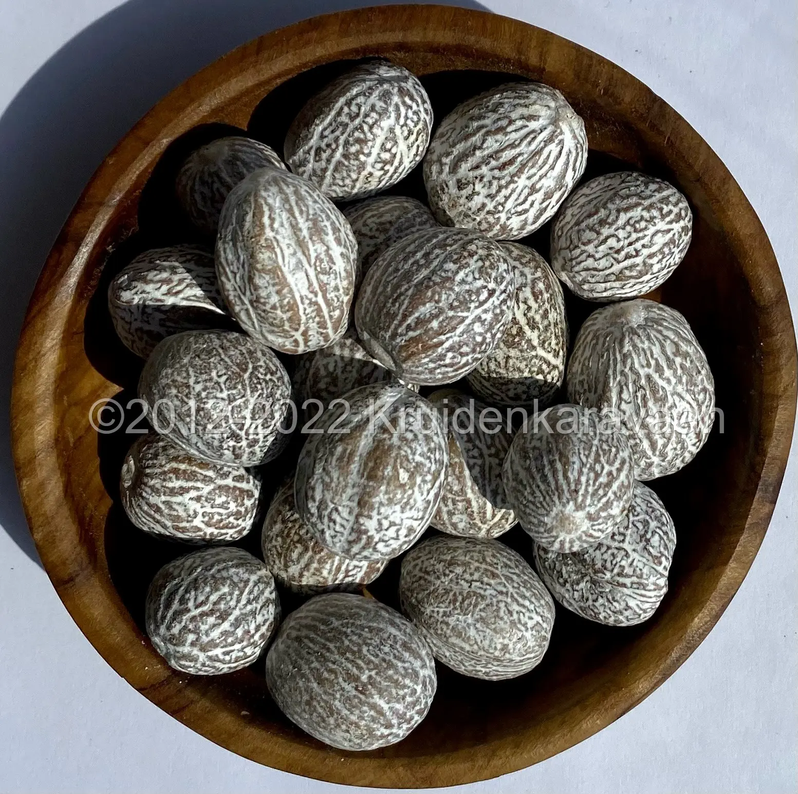 Hele nootmuskaatbollen (80/85 gram) 3 stuks (groot en gekalkt) – De muskaatnoot is een vrucht van de nootmuskaatboom (Myristica fragrans). Deze specerij teelt men voornamelijk in de tropische kustgebieden van India en Indonesië en in sommige landen van Afrika zoals Madagaskar.